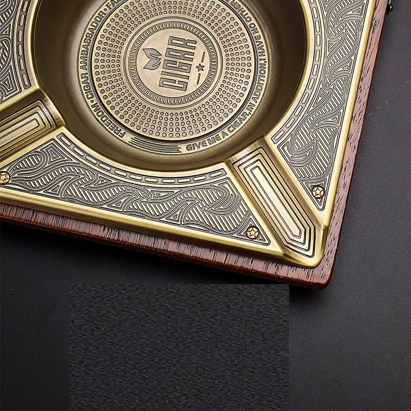 Solid Wood Fashion Stainless Steel Alloy Cigar Ashtray
